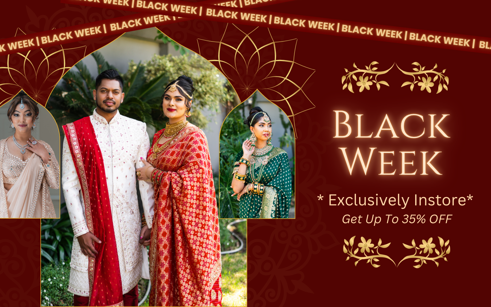 Visit us in-store to explore our stunning bridal collection with exclusive discounts on both men’s sherwanis and women’s outfits & saris.