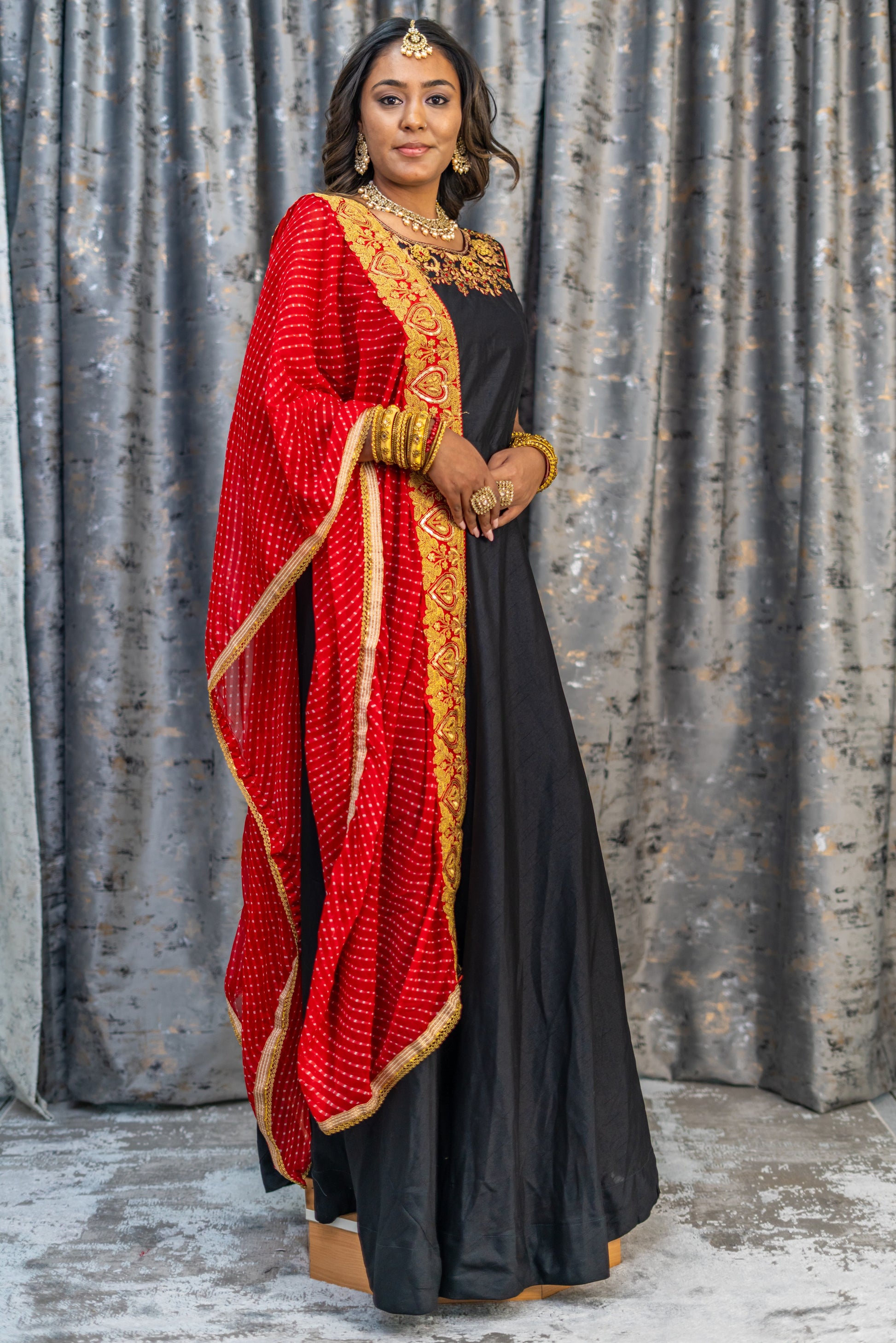 Black Raw Silk Punjabi Set with Contrast Dupatta