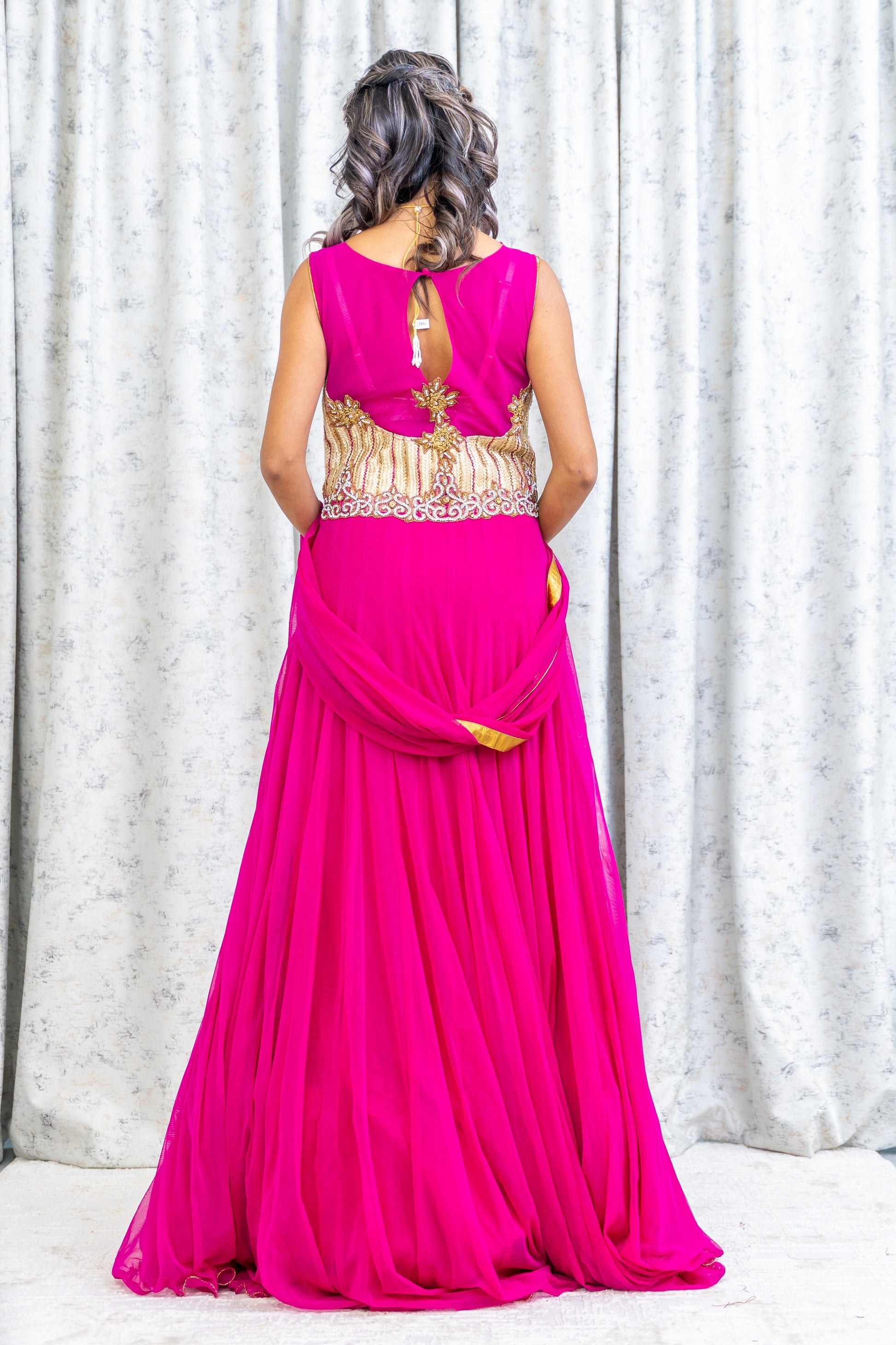 Rani Pink Net Lehenga Choli with Brocade & Swarovski Stone Work