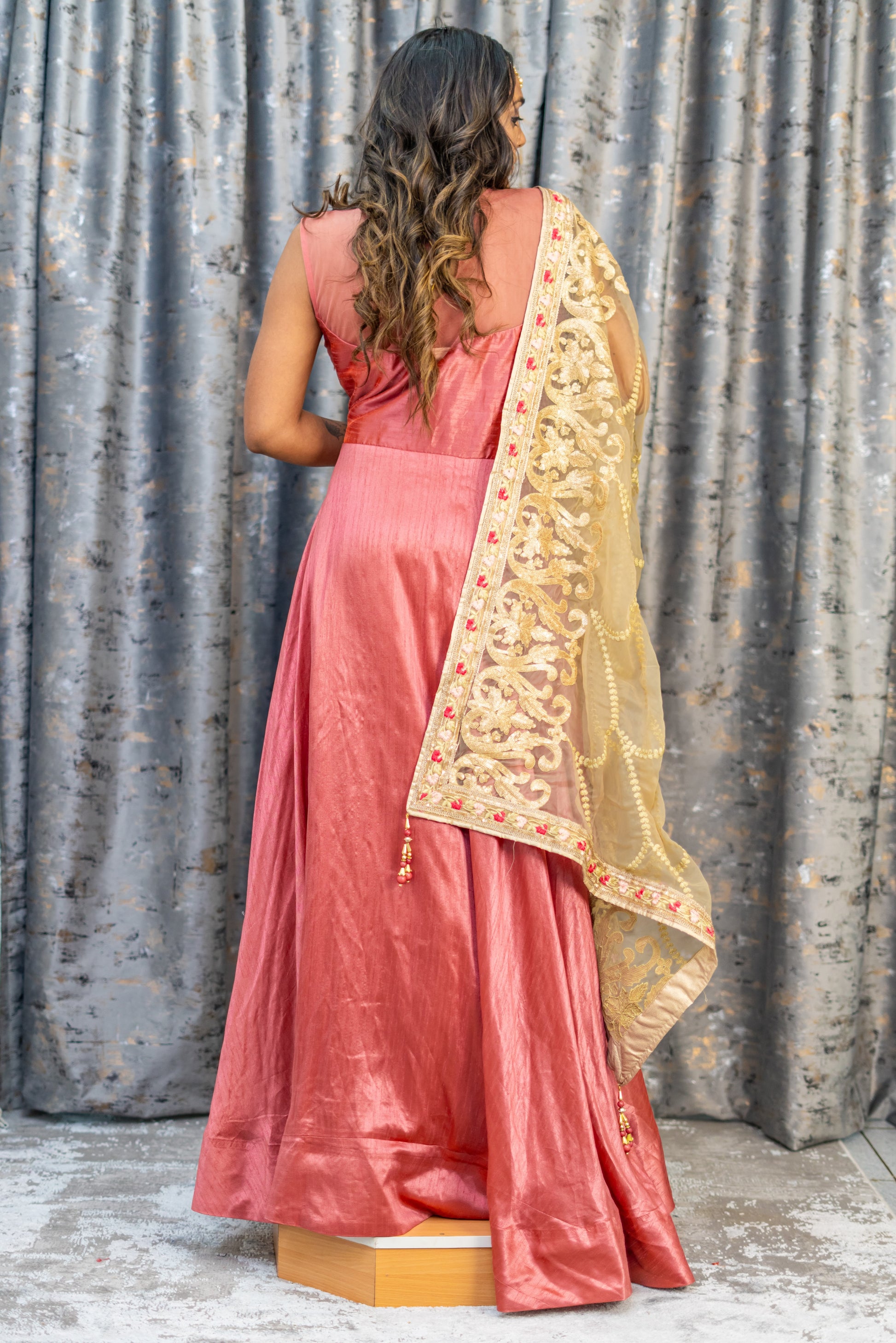 Dusty Pink Raw Silk Punjabi Set with Contrast Dupatta