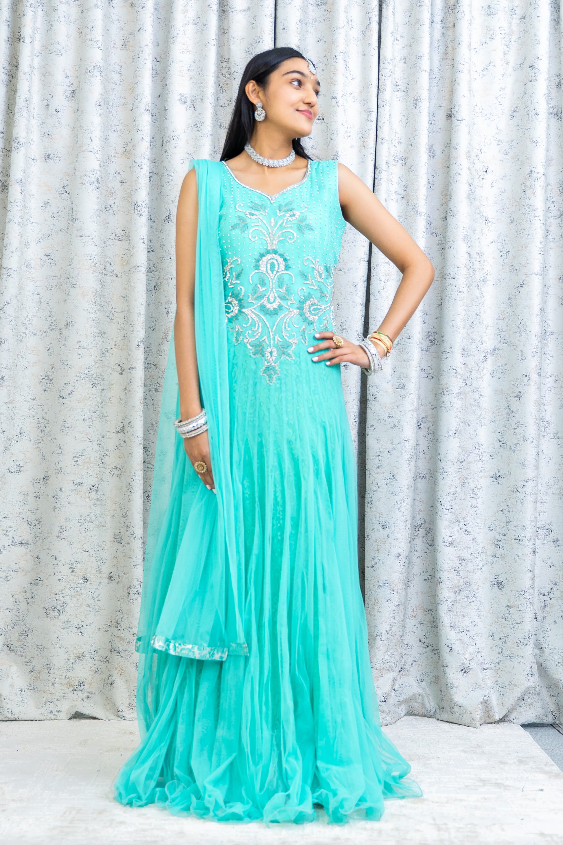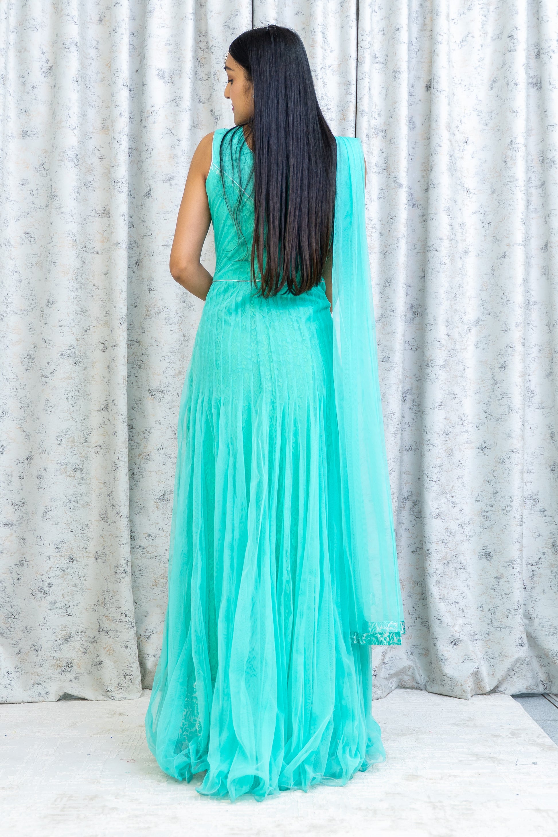 Light Blue Net Punjabi Set with Swarovski Stone Work