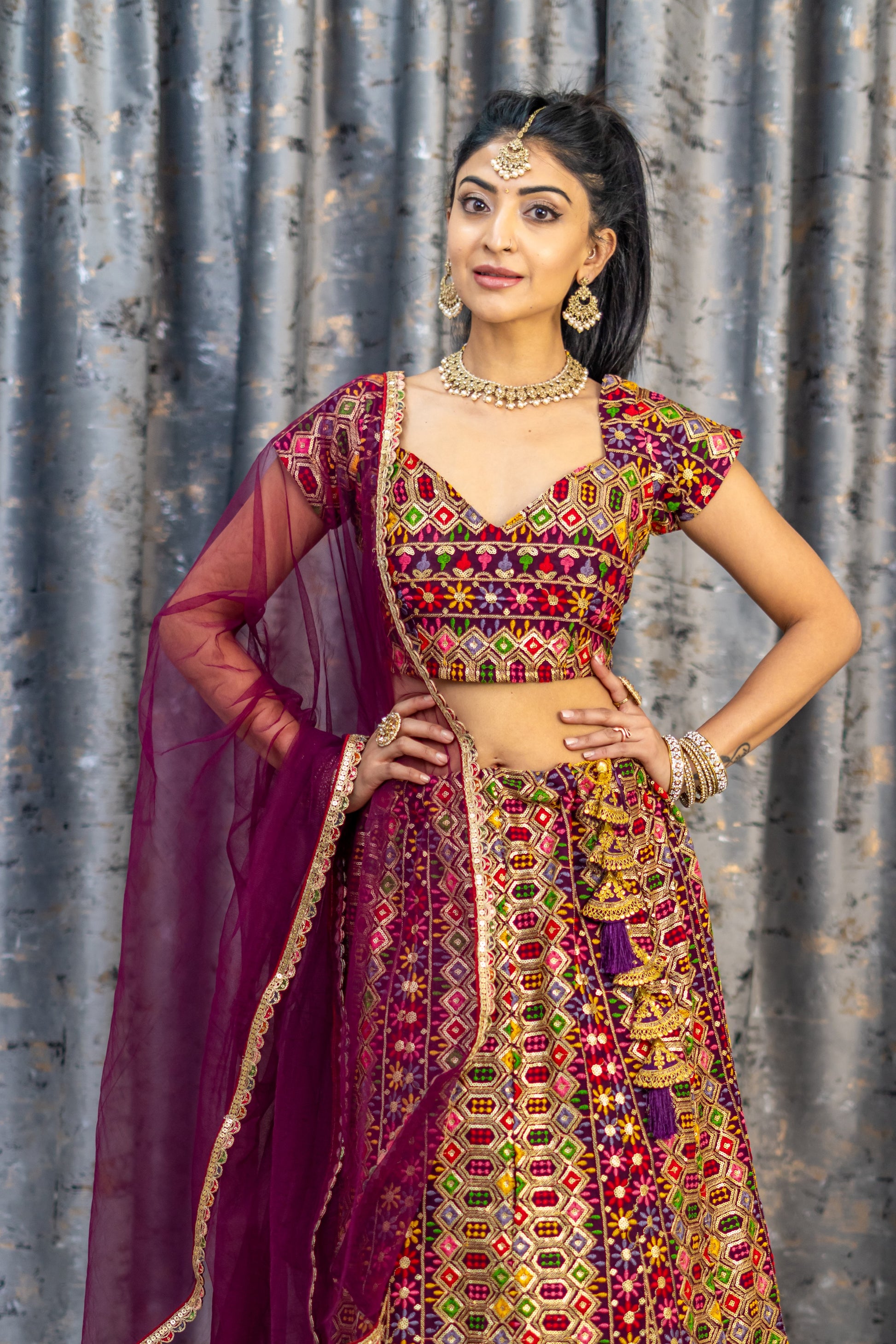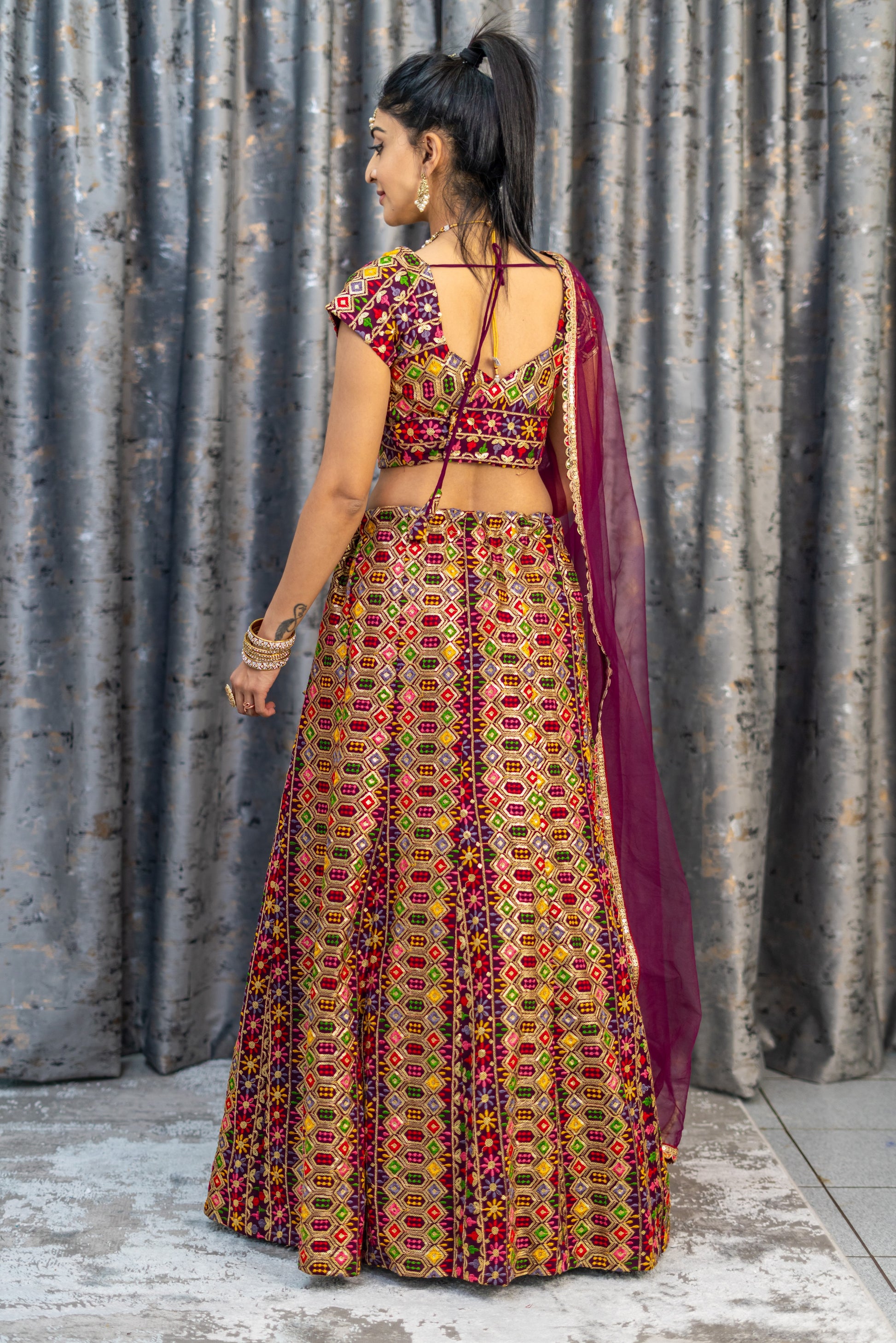 Maroon Colourful Cotton Lehenga Set with Embroidery