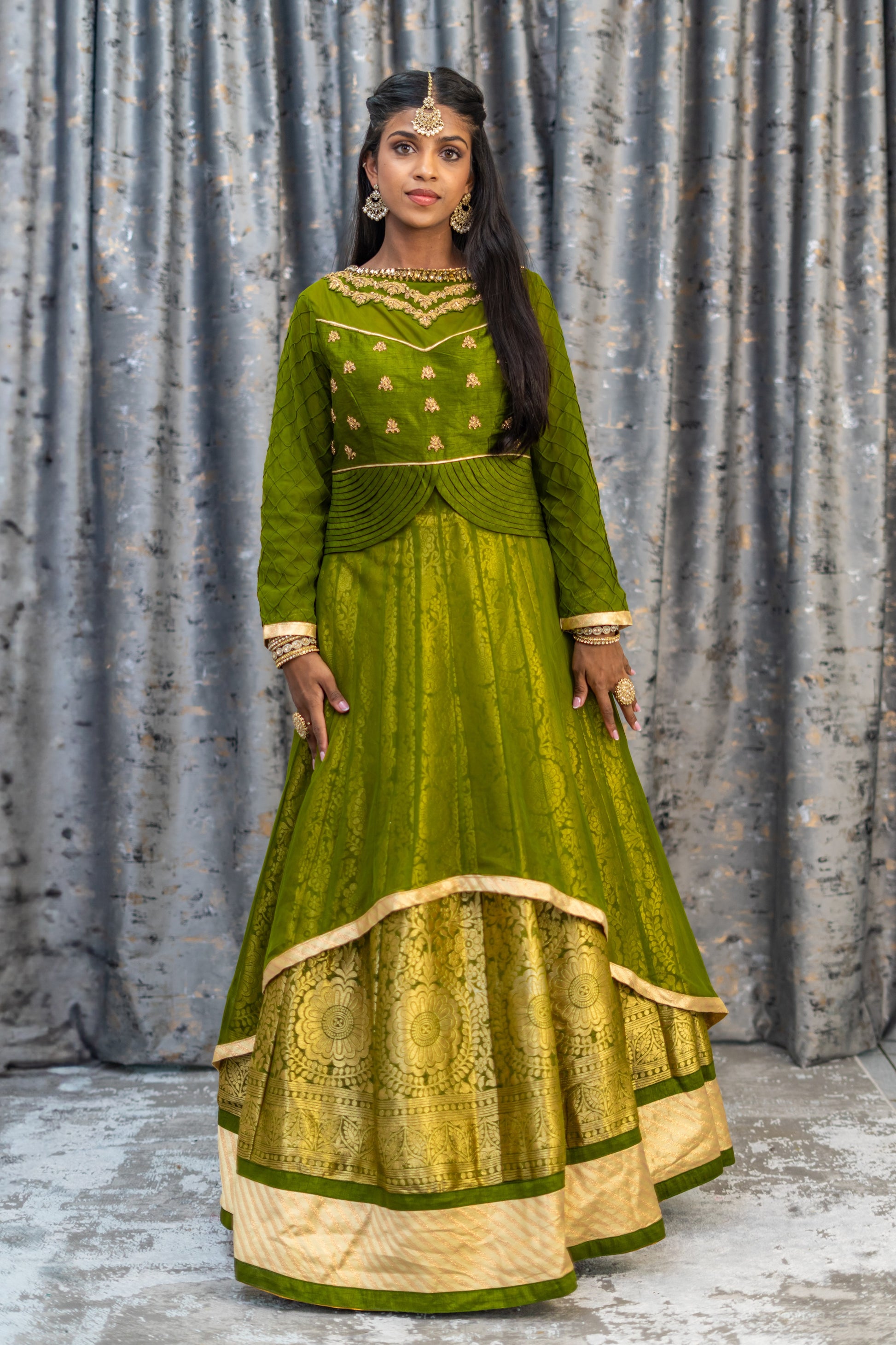 Mehndi Green Brocade Lehenga Set With Swarovski Stone Work