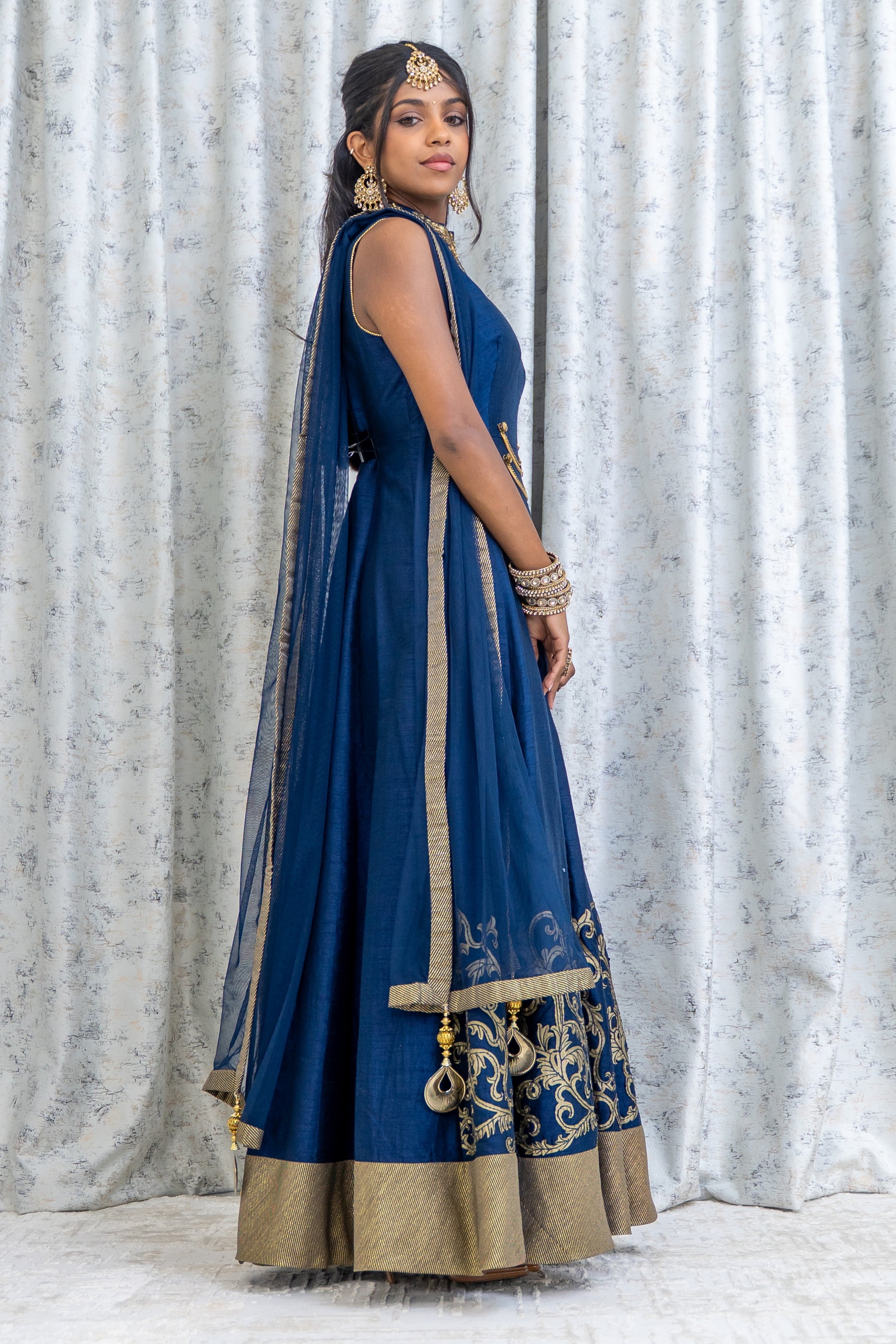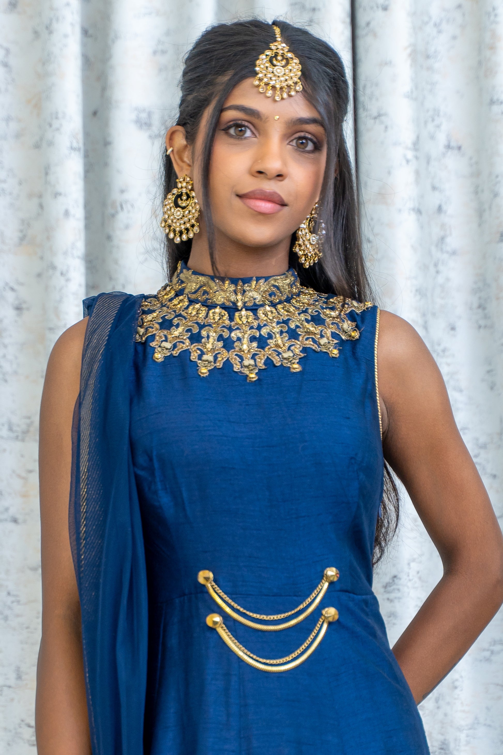 Navy Blue Raw Silk Punjabi Set with Swarovski Stone Work