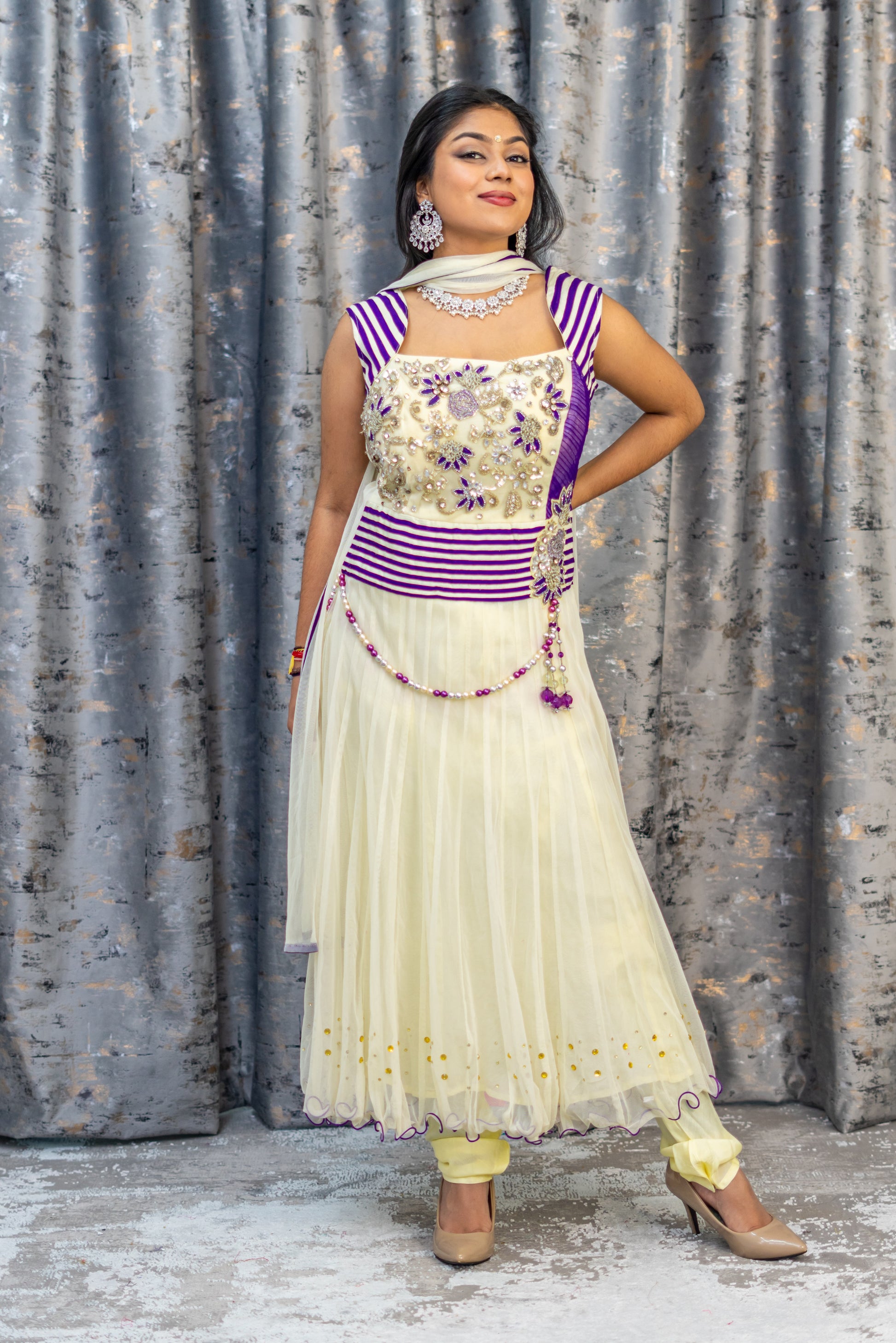 Off White & Purple Punjabi Set with Swarovski Stone Work