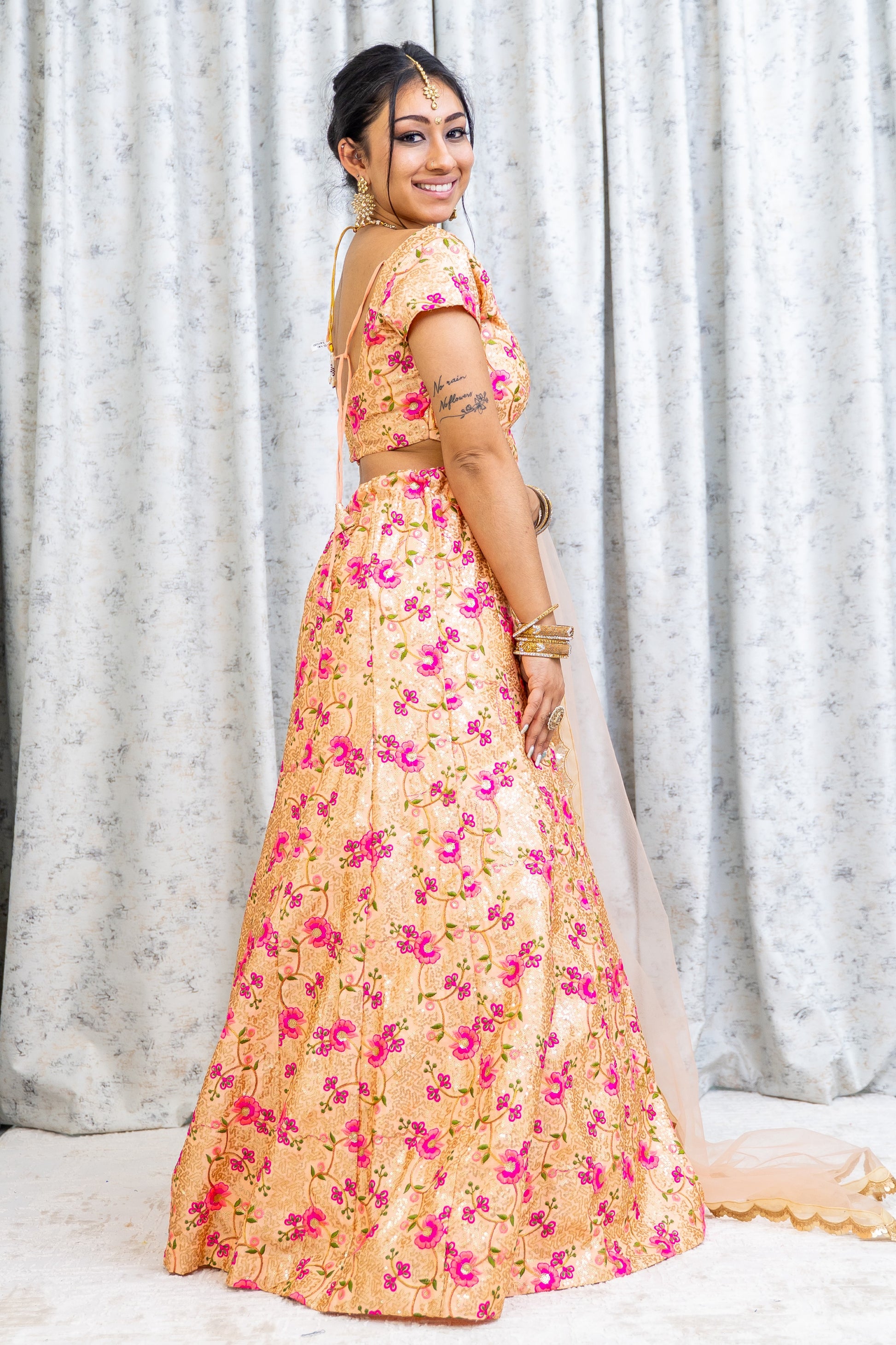 Peach Colourful Cotton Lehnga Choli with Embroidery