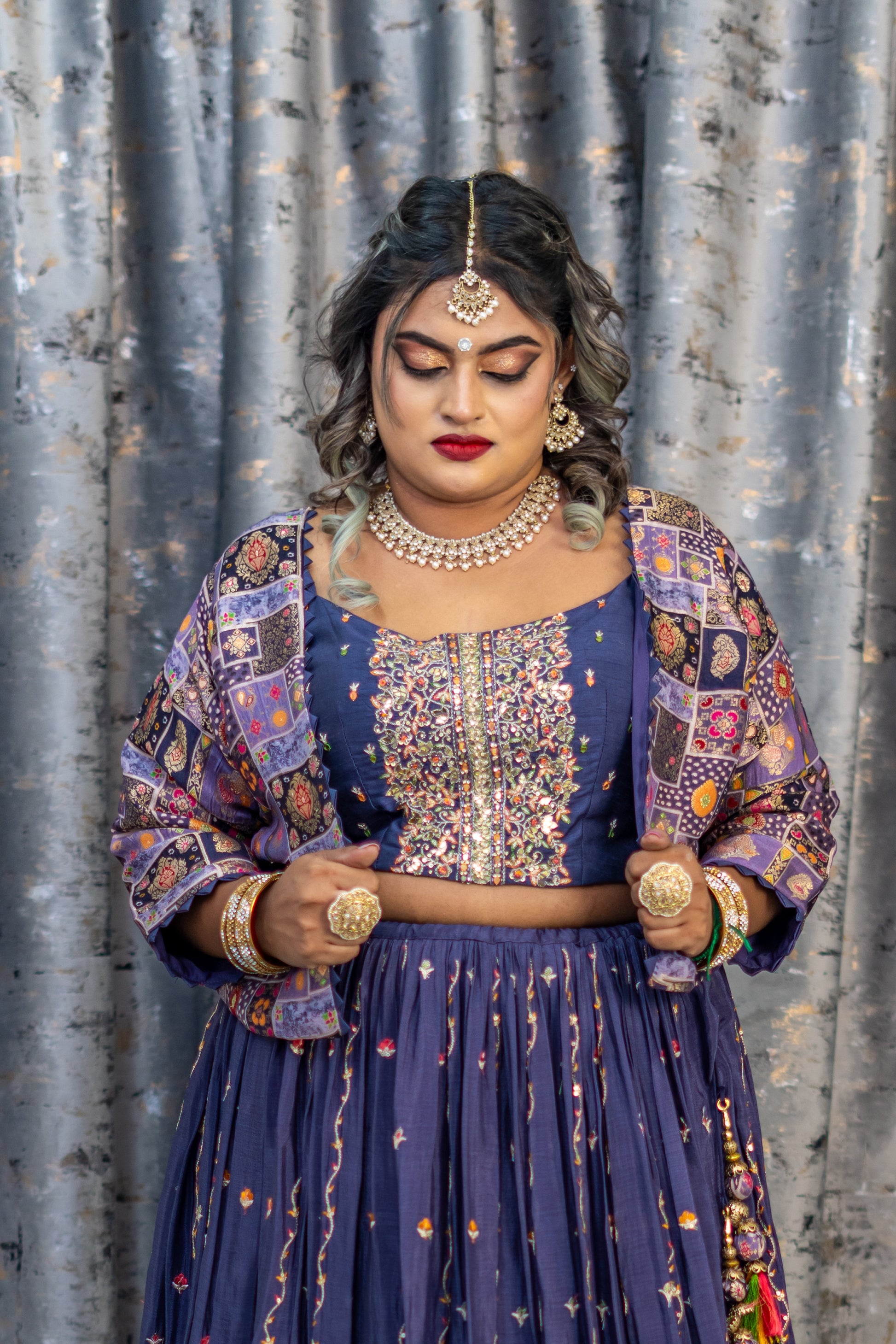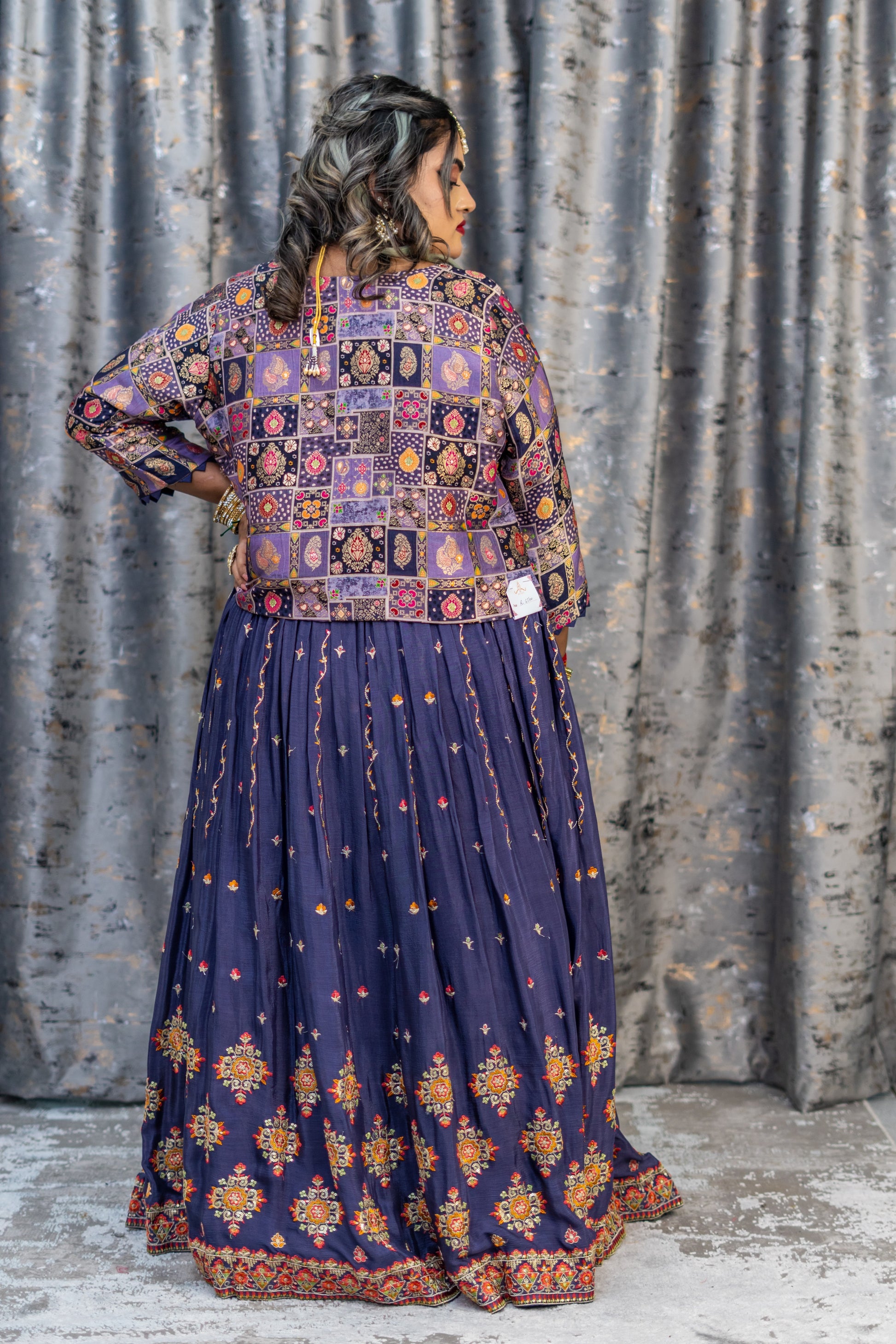 Purple Chiffon Punjabi Set with Brocade Jacket and Embroidery Work