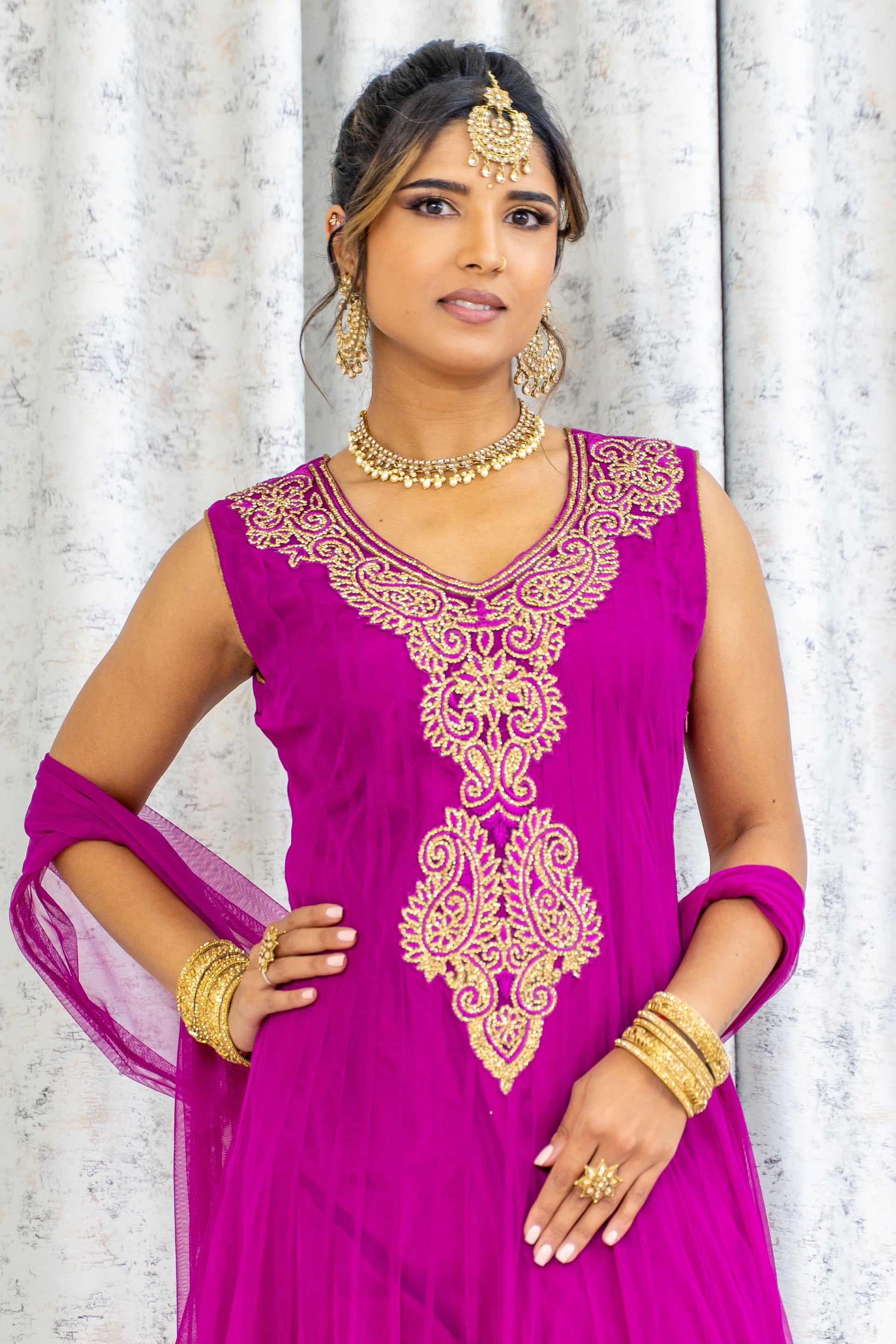 Purple Net Punjabi Set with Gold Swarovski Stone Work