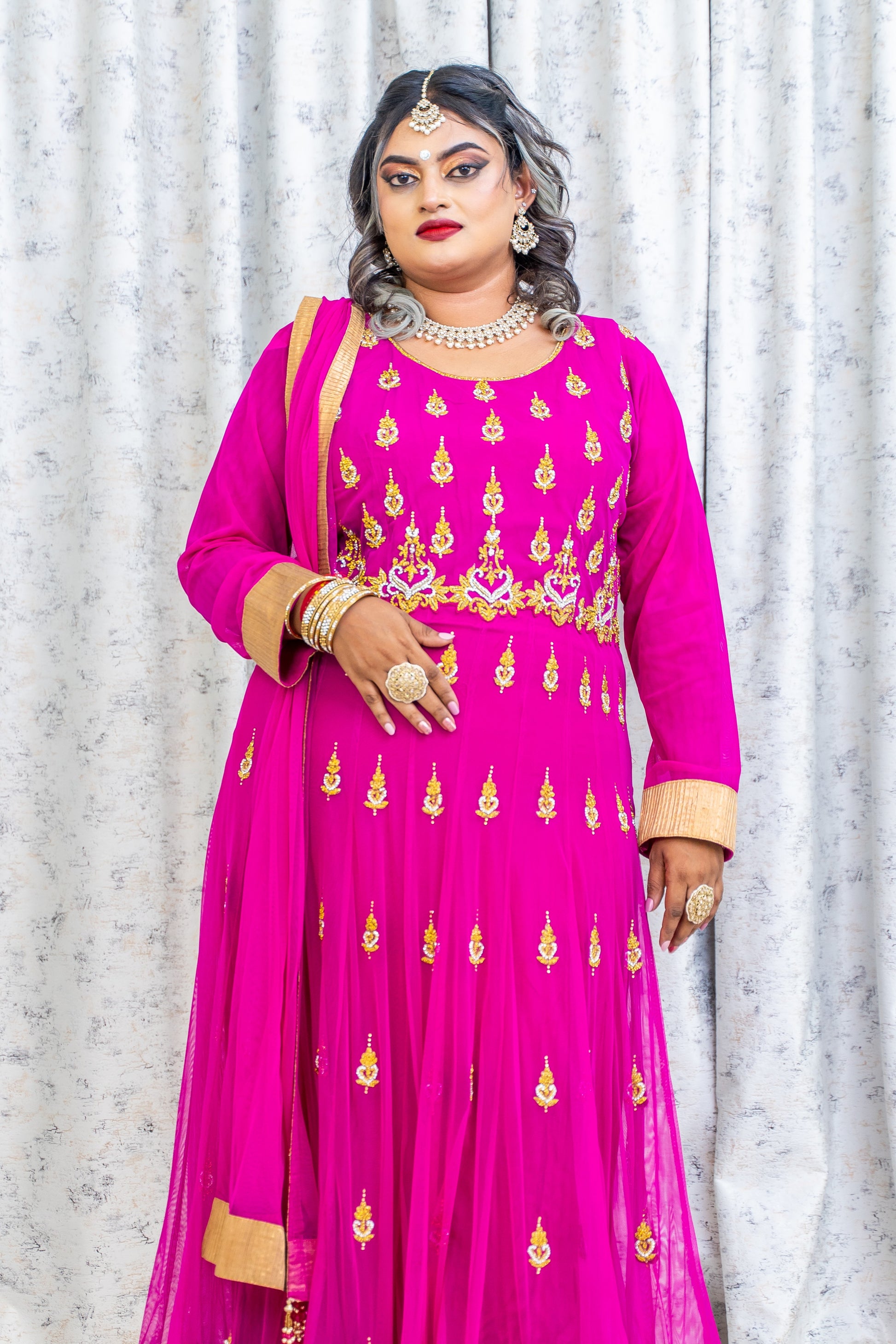 Rani Pink Net Punjabi Set with Swarovski Stone Work