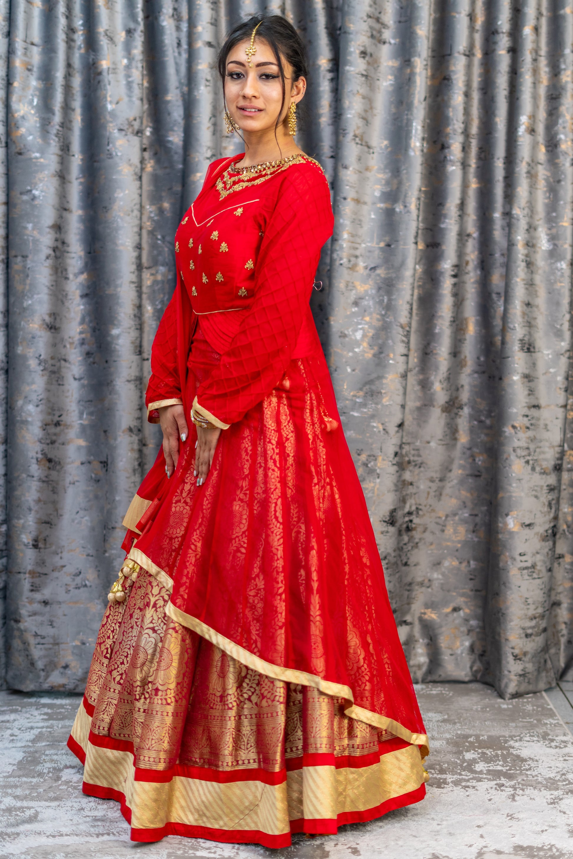 Red Brocade Lehenga Set With Swarovski Stone Work