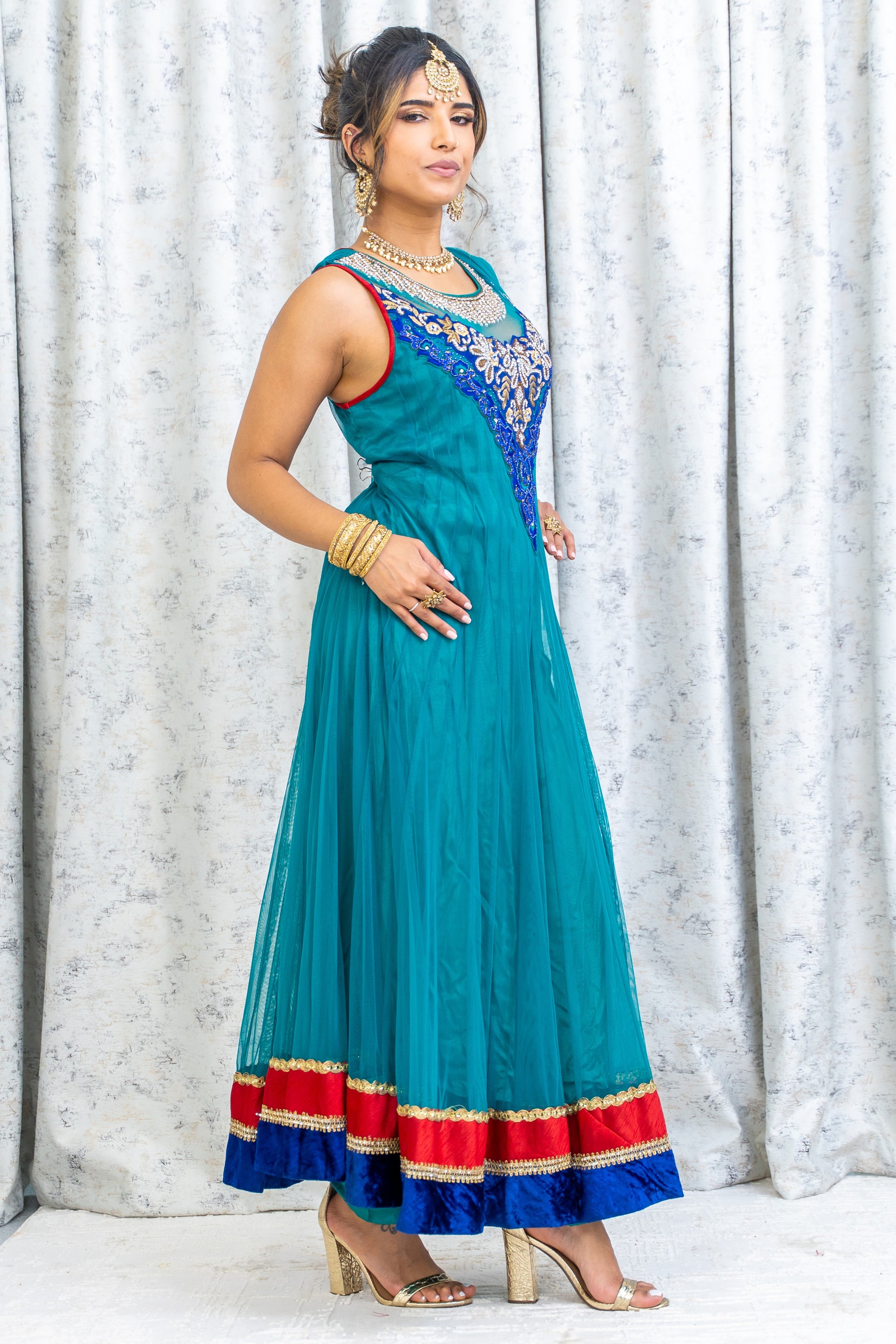 Teal Blue Net Punjabi Set with Swarovski Stone Work