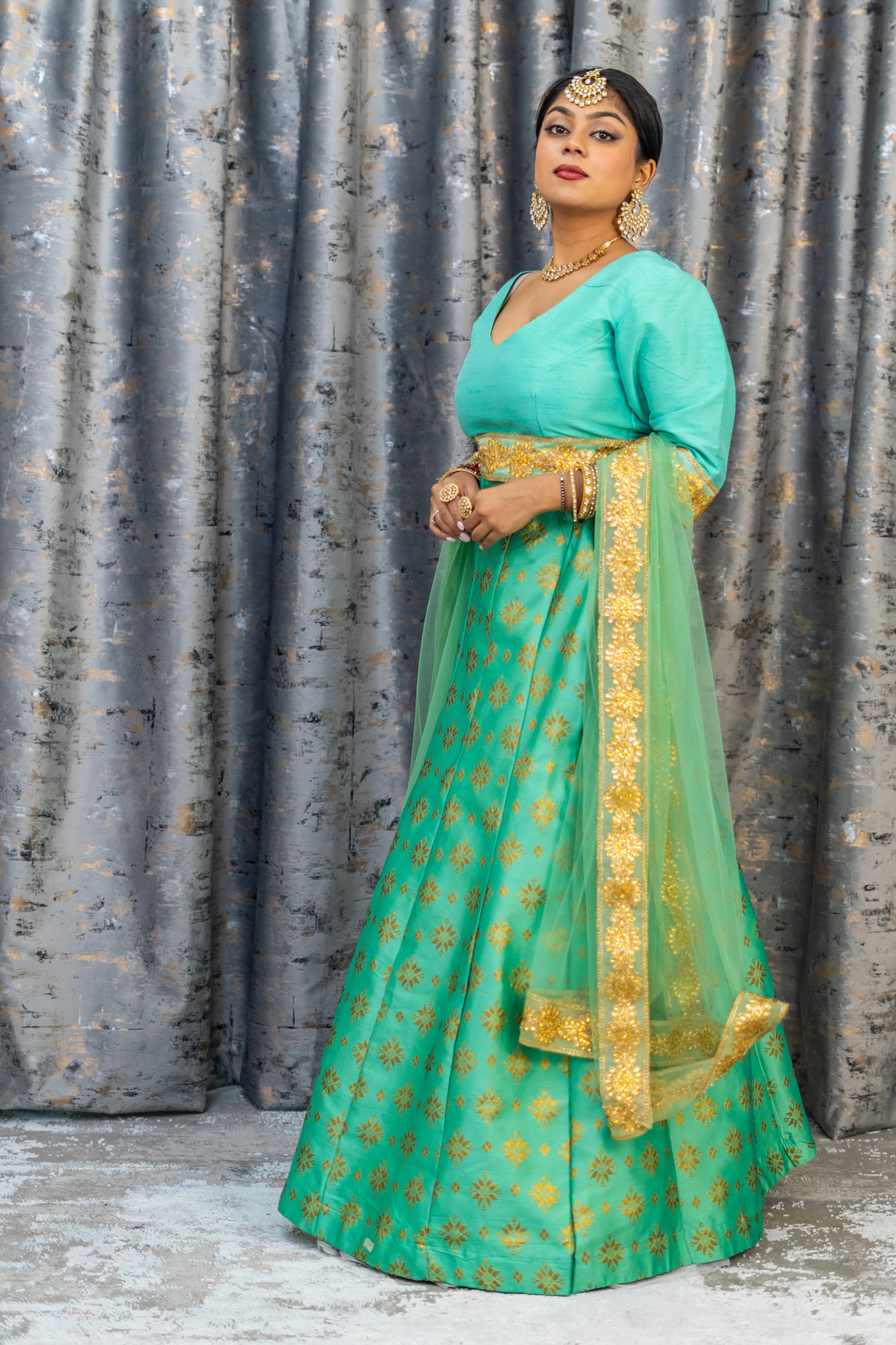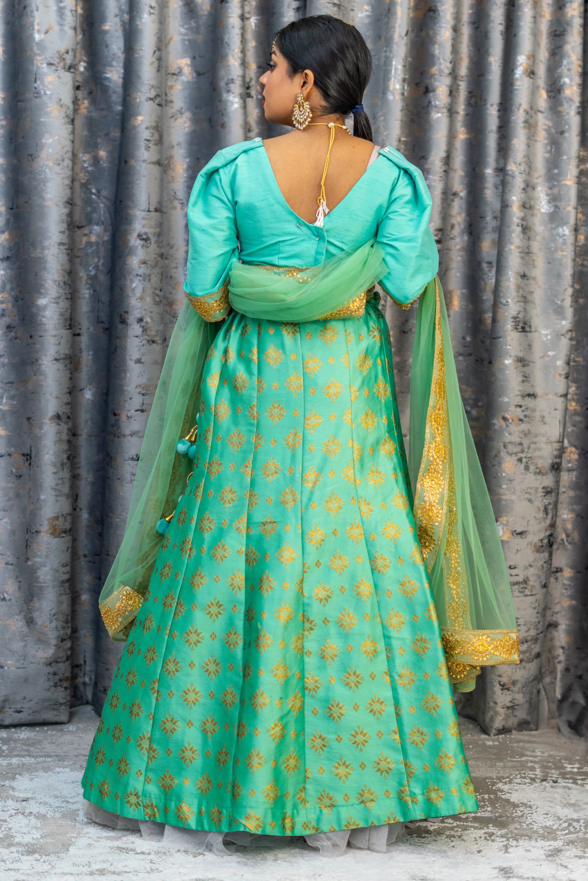 Teal Brocade Lehenga Set