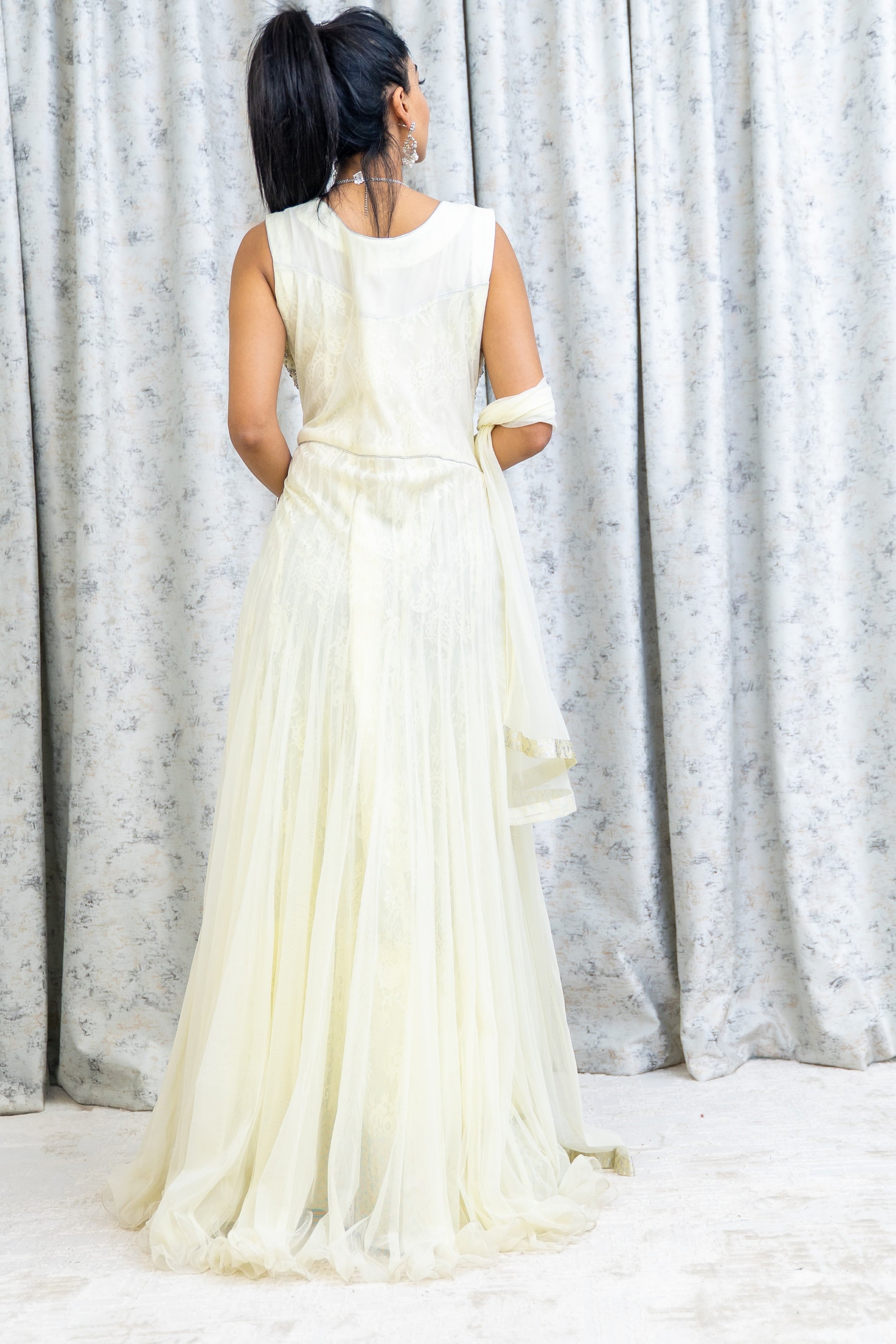 White Net Punjabi Set with Swarovski Stone Work
