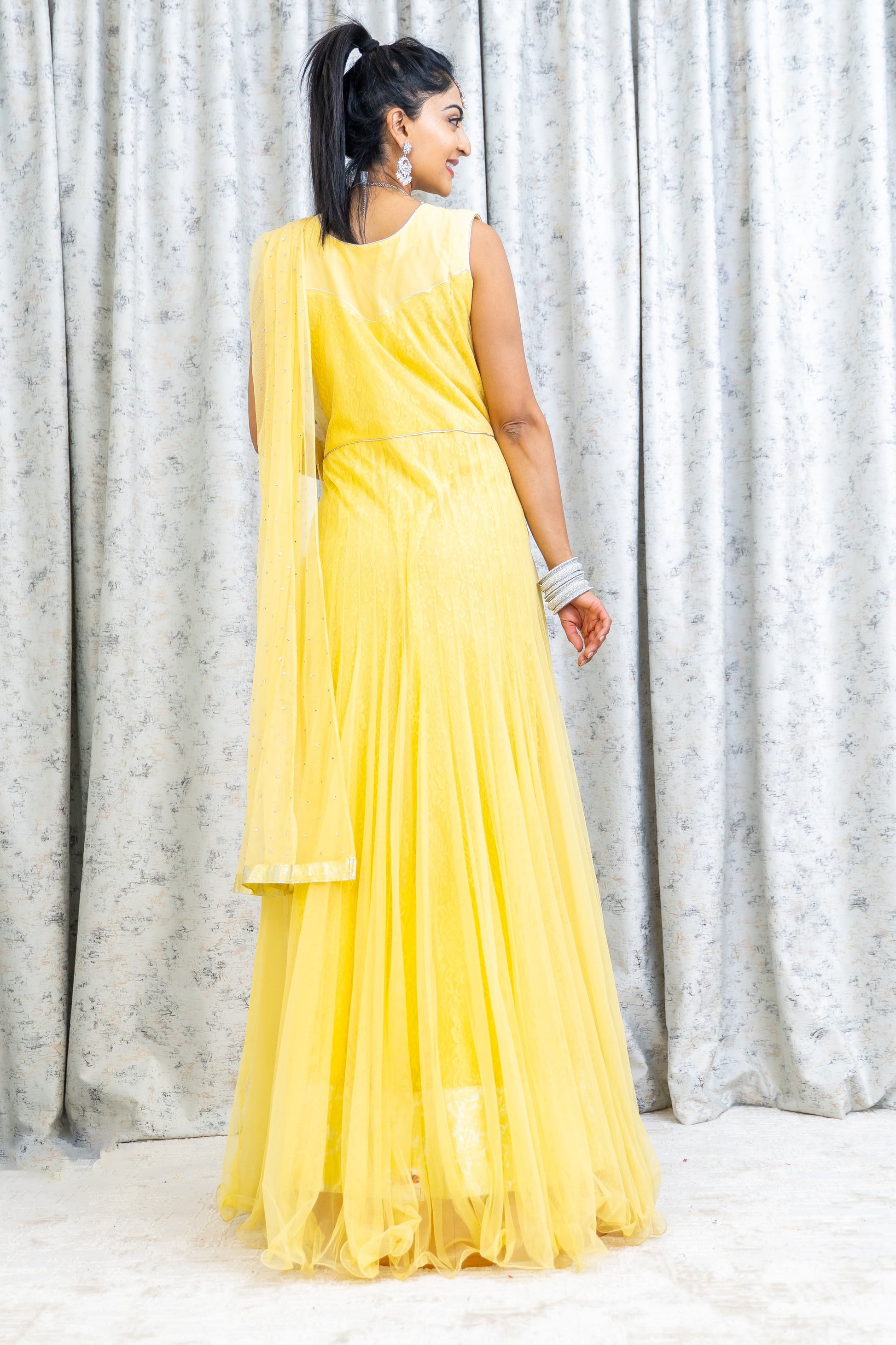 Yellow Net Punjabi Set with Swarovski Stone Work