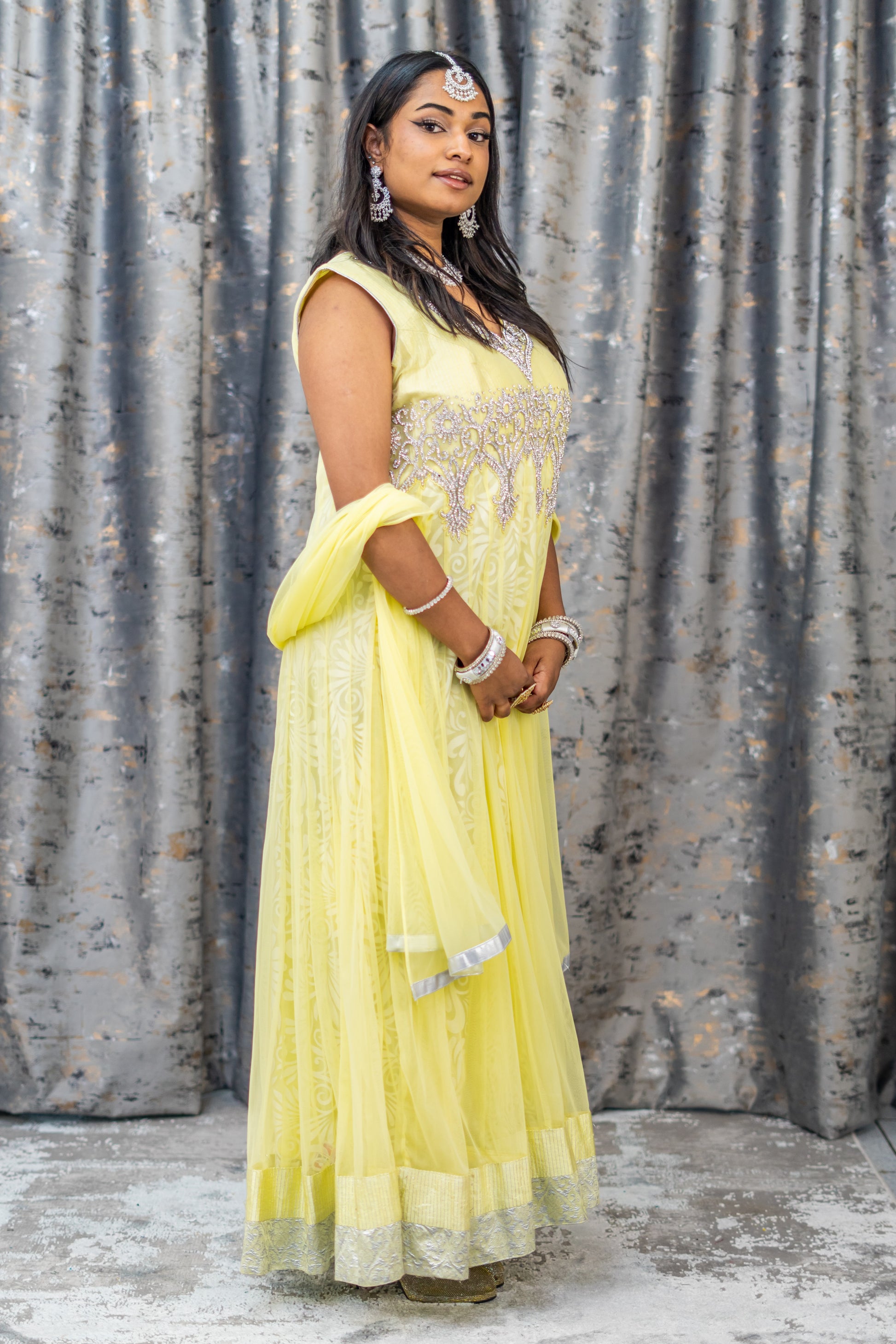 Yellow Net Punjabi Set with Swarovski Stone Work