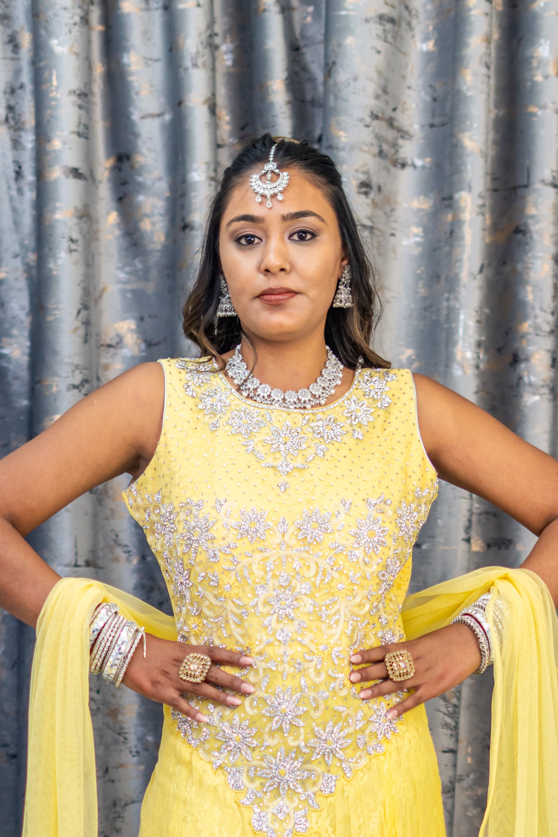 Yellow Net Punjabi Set with Swarovski Stone Work