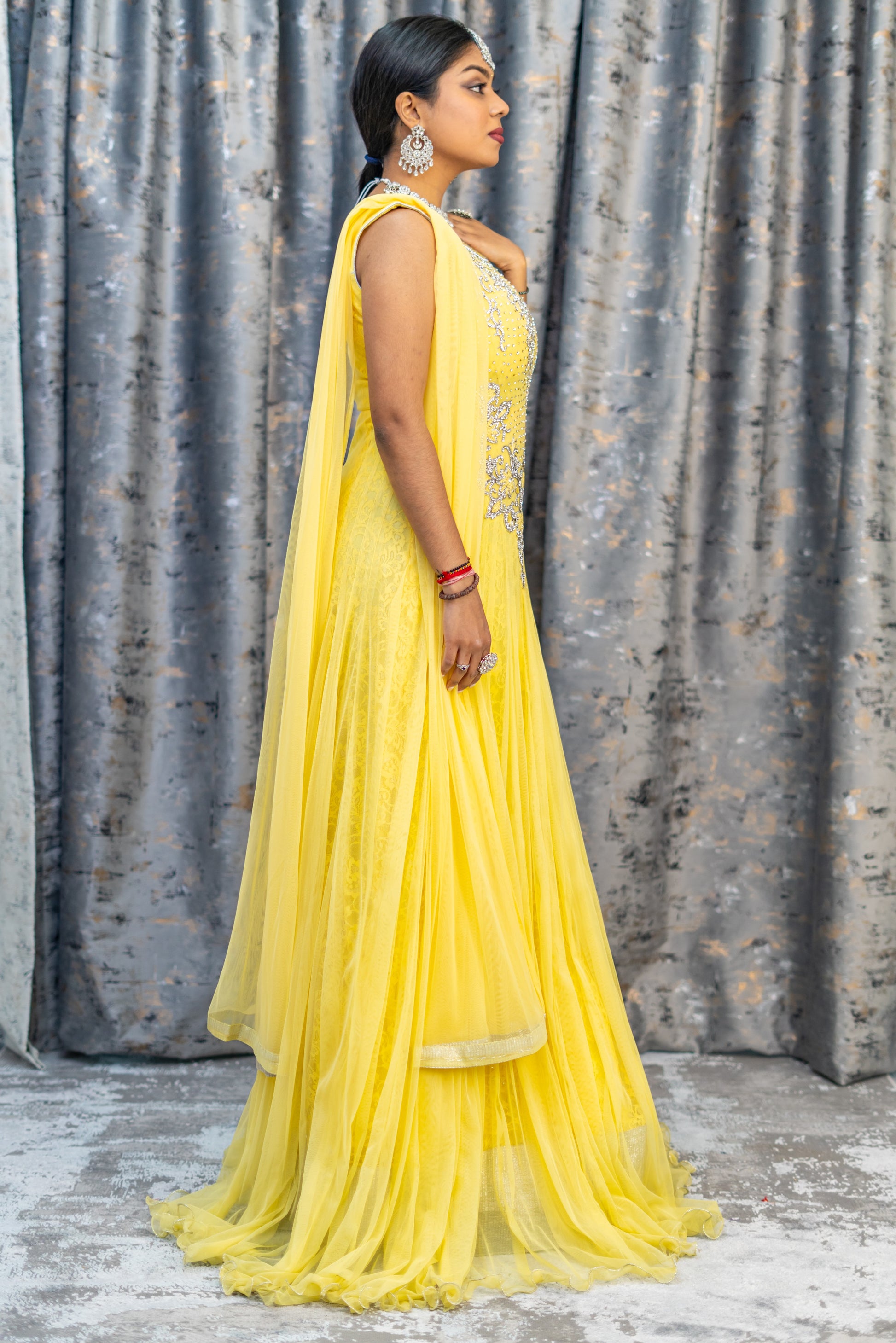 Yellow Punjabi Set with Silver Swarovski Stone Work